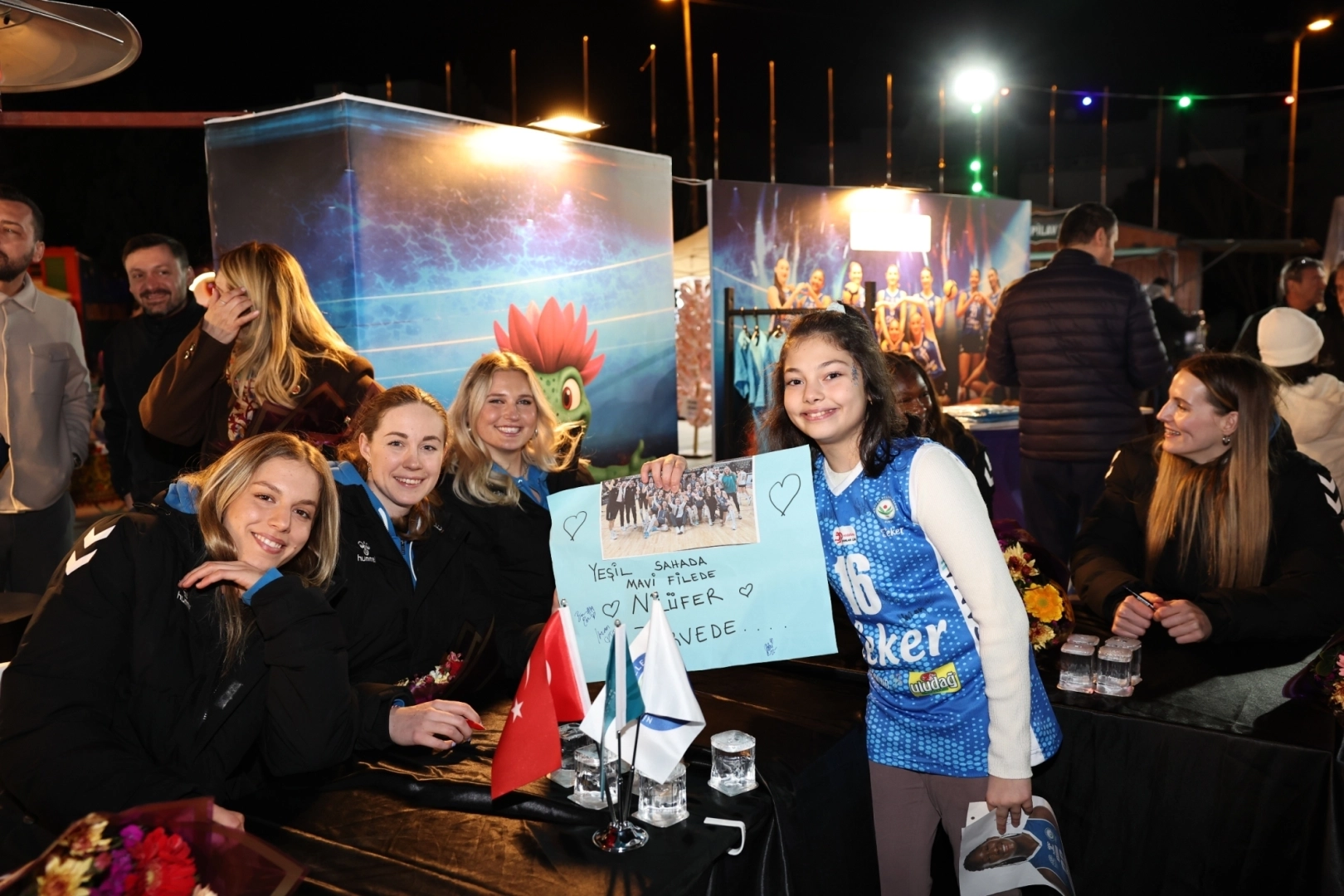 BURSA (İGFA) - Nilüfer Belediyespor Eker Kadın Voleybol Takımı, 8 Mart Dünya Kadınlar Günü kapsamında düzenlenen imza gününde taraftarıyla buluştu. Sevgi Yolu’nda meşalelerle karşılanan sporcular, sahneye alkışlar eşliğinde çıktı.